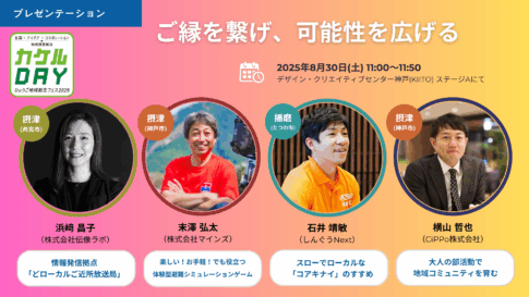 概要 人と人との“ご縁”が、新たなアイデアや行動を生み出し、地域に広がる可能性をもたらす——そんな「カケルDAY」のテーマを象徴するようなセッションが、こちらの『ご縁を繋げ、可能性を広げる』です。 このセッションでは、異...